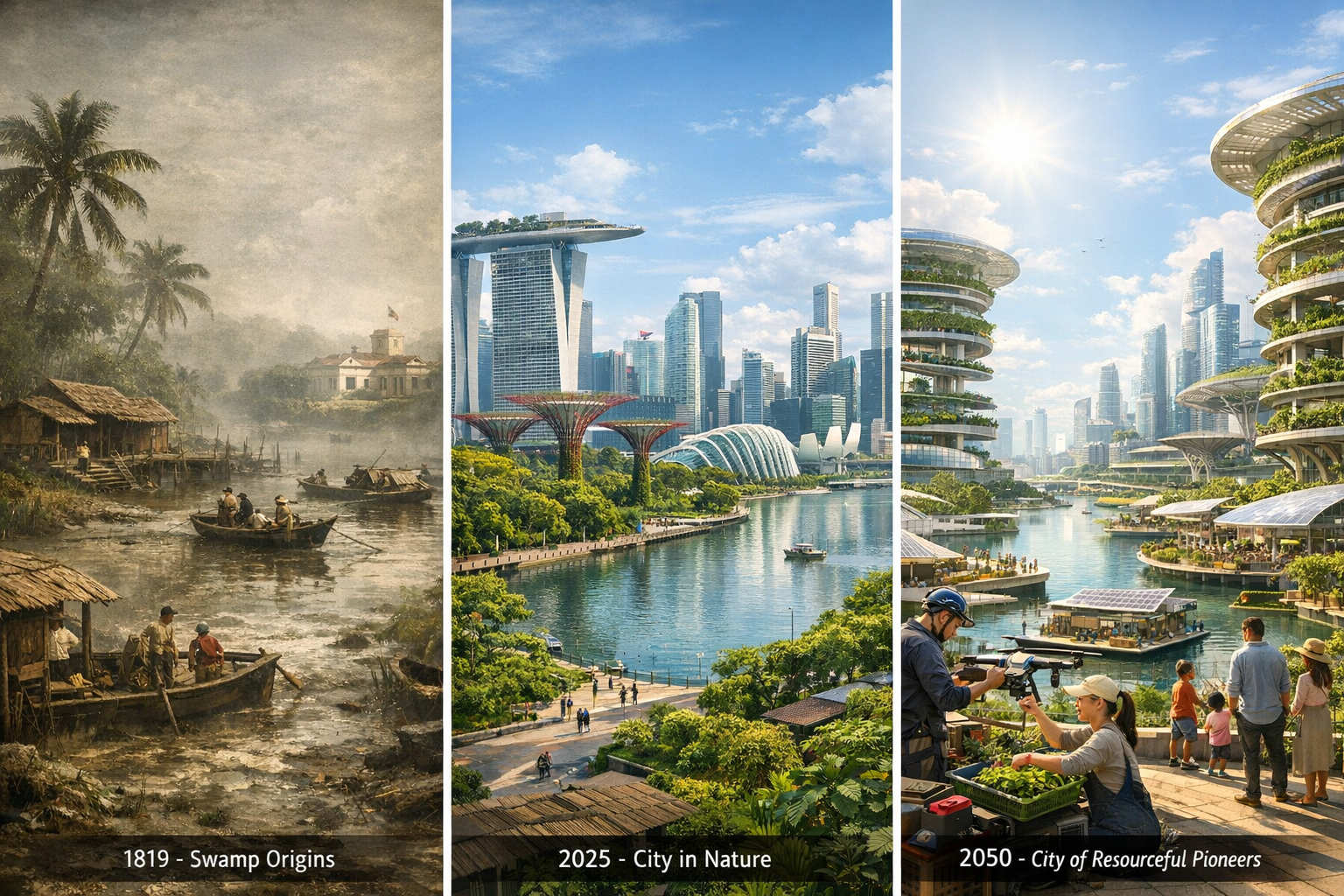 From a vestigial swamp to a global city in nature: Singapore’s early nation‑building years are a modern example of this principle in action. The pioneers were not optimising for efficiency. They were building capability together under constraint — disciplined, adaptive, communal, long‑term oriented. They were not “productive” in the managerial sense. They were resourceful and capable in the civilisational sense.